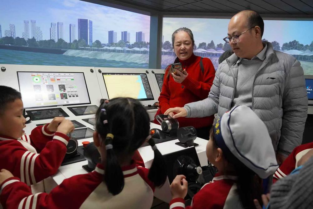 本次研学活动紧扣幼儿的认知规律与儿童美育发展需求,精心设计了航海文化普及、校园沉浸式参观两大板块,让孩子们在亲身体验中感受航海魅力。在家长、老师与我校志愿者的陪同下,小朋友们打卡组合式液货模拟船“吴淞”号,近距离感受航海载体的独特风貌;随后前往木兰仿真中心航海模拟器,亲身体验模拟航行的乐趣,直观感受航海科技的奇妙。活动最后,幼儿园师生及家长一同来到学生服务中心报告厅,依次参与趣味旗语学习、水手结手工制作等体验项目,沉浸式欣赏集体舞“海丝帆扬”,在轻松欢乐的氛围中,感受校园文化与航海特色的交融。