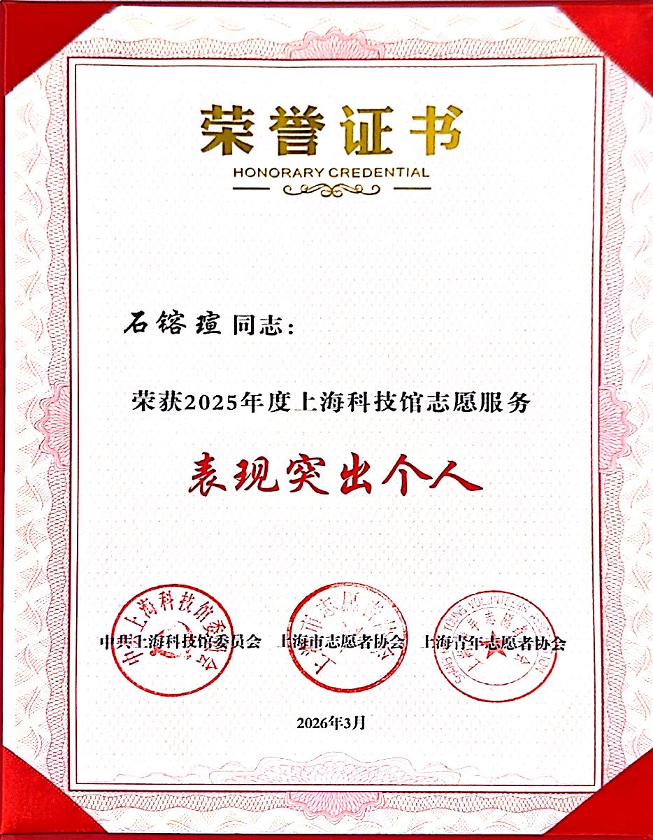 2025年度,学校团委持续深化与上海科技馆的志愿服务合作,组织青年志愿者常态化参与科普讲解、秩序维护、活动保障等工作。全年累计在上海天文馆(上海科技馆分馆)服务580人次,在上海自然博物馆(上海科技馆分馆)服务96人次,总服务时长达5400小时。志愿者们以饱满热情、细致服务践行 “奉献、友爱、互助、进步” 的志愿精神,在传播科学知识、服务公众需求的过程中,生动诠释了 “忠信笃敬” 的校训内涵,赢得了场馆方与市民游客的高度认可。