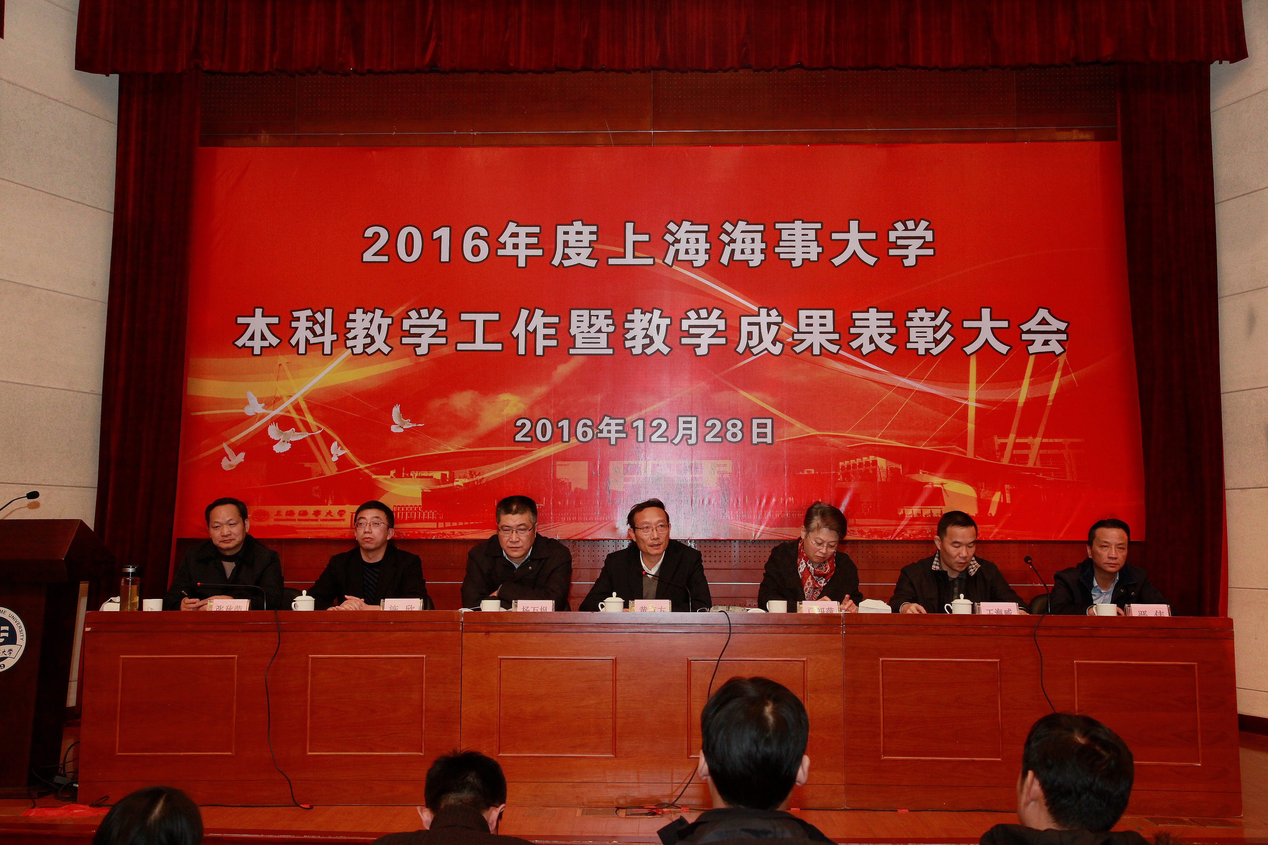12月28日,上海海事大学2016年度本科教学工作暨教学成果表彰大会在图书馆中远报告厅召开。校党政领导,各职能部门负责人,各学院党政领导、教授、系主任、教研室主任、专业负责人等出席会议。