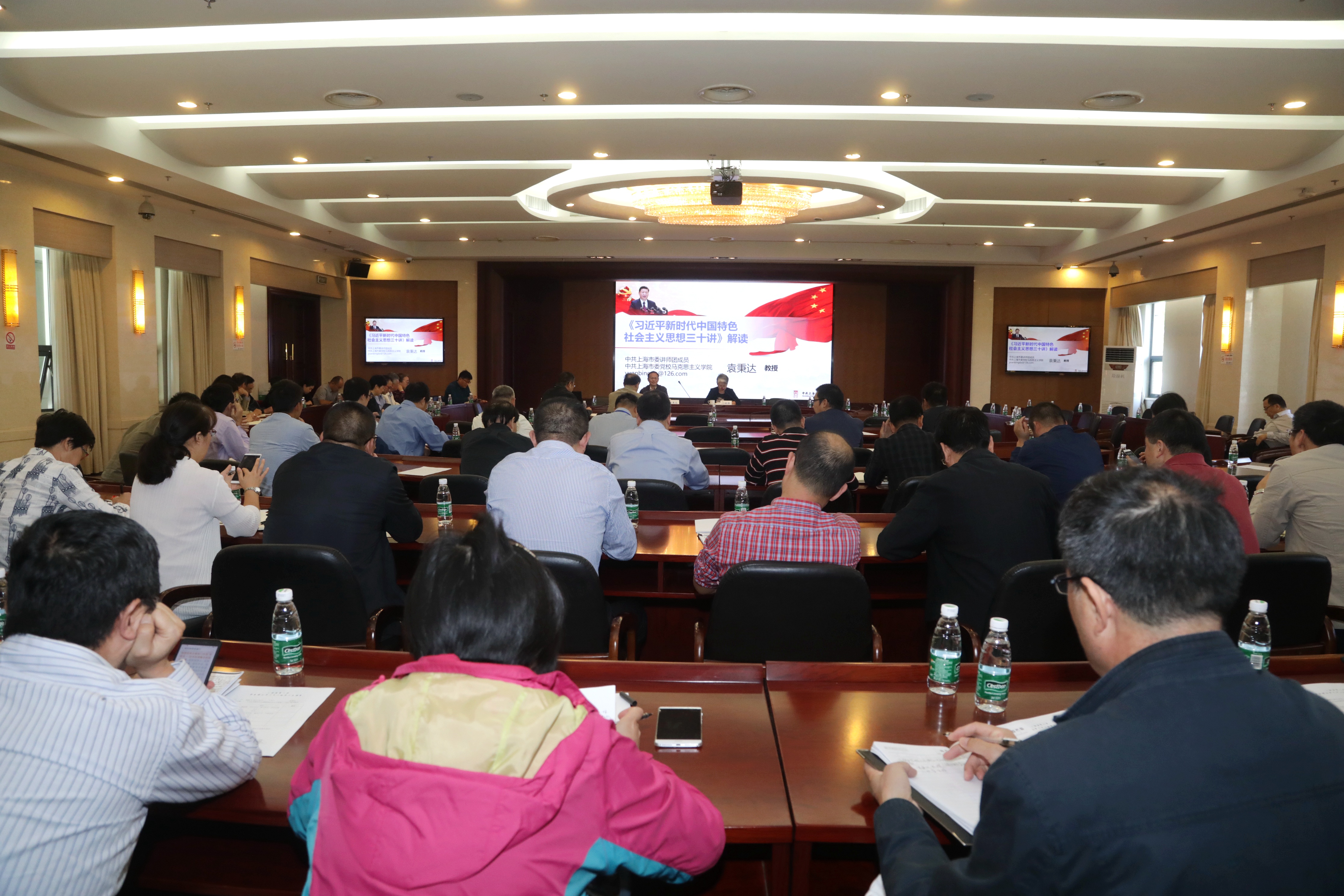 10月12日下午,中共上海市委讲师团成员袁秉达教授应邀来到上海海事大学,为我校党委中心组成员、马克思主义学院教师作了《习近平新时代中国特色社会主义思想三十讲》专题辅导报告。报告会由校党委副书记、纪委书记门妍萍主持。