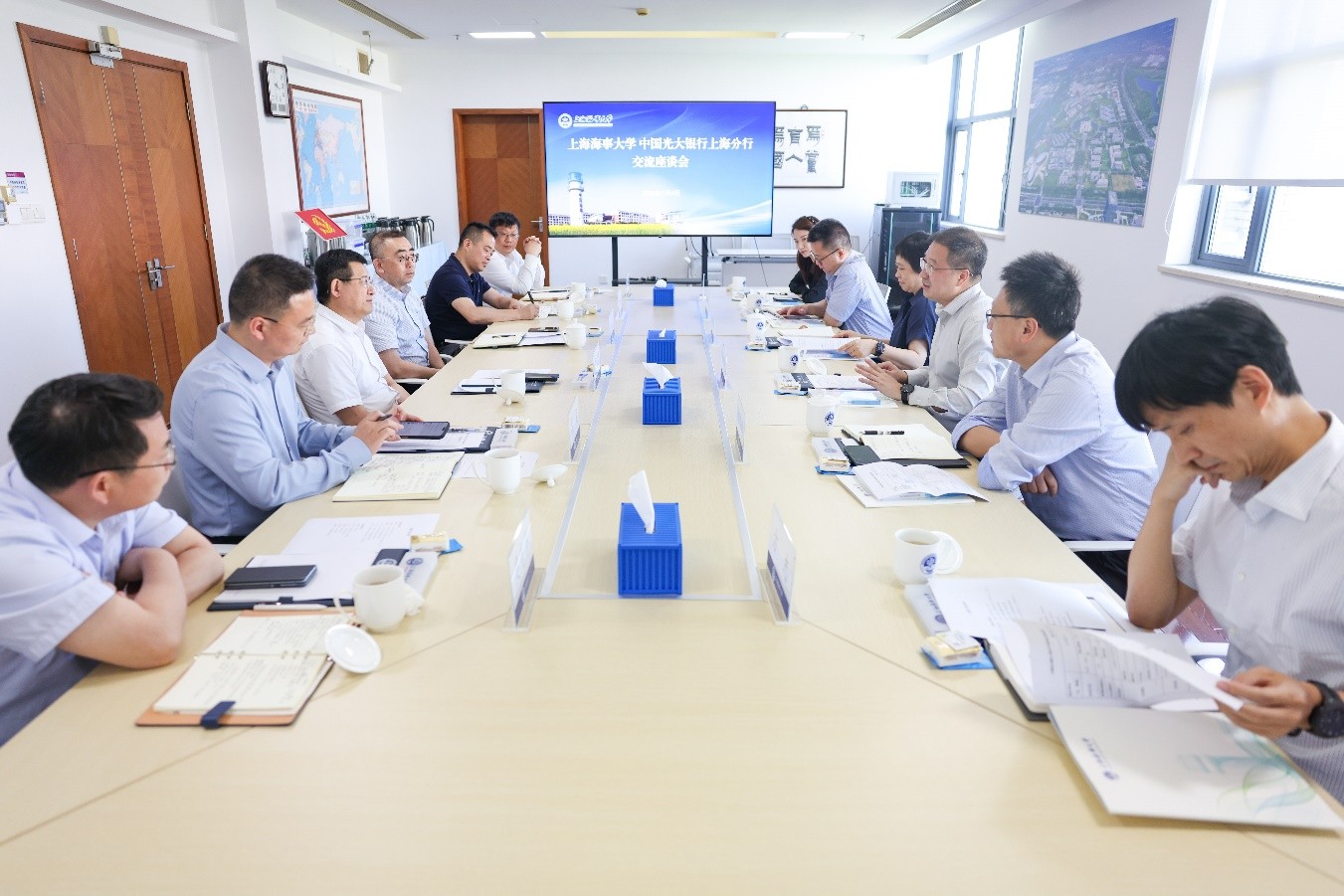 中国光大银行上海分行零售金融部、机构客户部、人力资源部、自贸试验区分行、临港新片区支行负责人等,学校校长办公室、财务处、学生处、经济管理学院等相关负责人参加座谈。