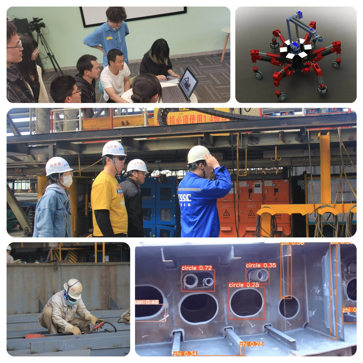 “深蓝智匠”和“风翼侦观”科创团队都依托学校基础实验实训中心苹果树工坊平台。“深蓝智匠”项目聚焦船舶精细化智能化焊接的发展前景与传统人工焊接的迭代升级,自主研发一套兼具软硬件系统的多功能船体自动化“分段”装配机器人。对比现有船舶制造工艺,在智能识别与不定向焊接技术上更具前驱力。